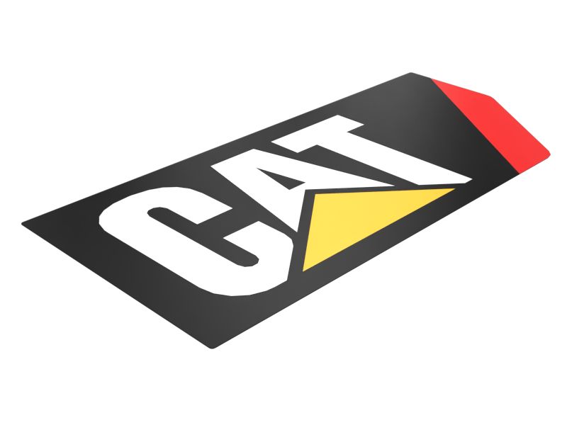 ملصق شريطي من Cat® مع شريط تمييز أحمر ملصق على الجانب الأيسر من إطار الماكينة لتعريف الموديل على المعدة