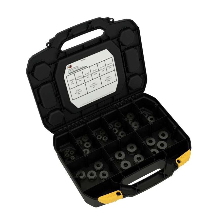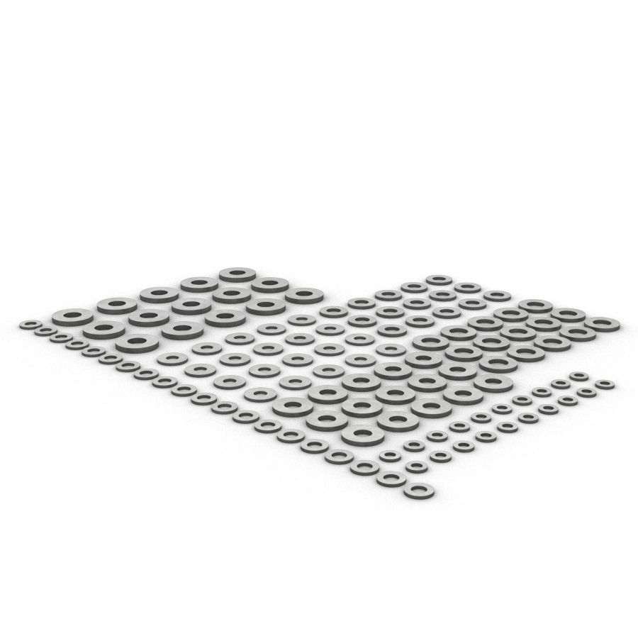 Sada podložek: 6 velikostí, 6 různých tlouštěk, 9 katalogových čísel, 150 kusů, tvrdé podložky, povrchová úprava zinkovými vločkami