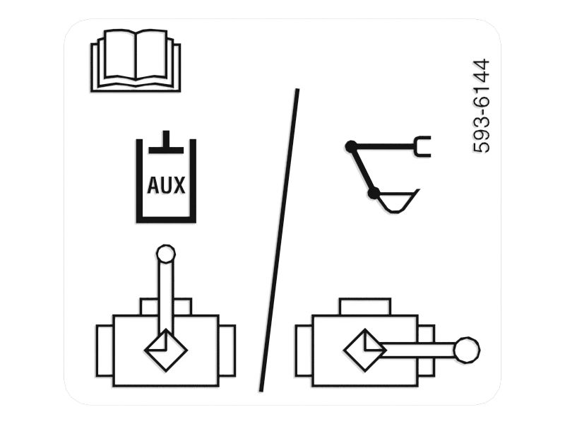 Cat®-Zusatzkugelhahn-Identifikationsfolie auf der rechten Seite des Stielteils der Schaufelleitungen