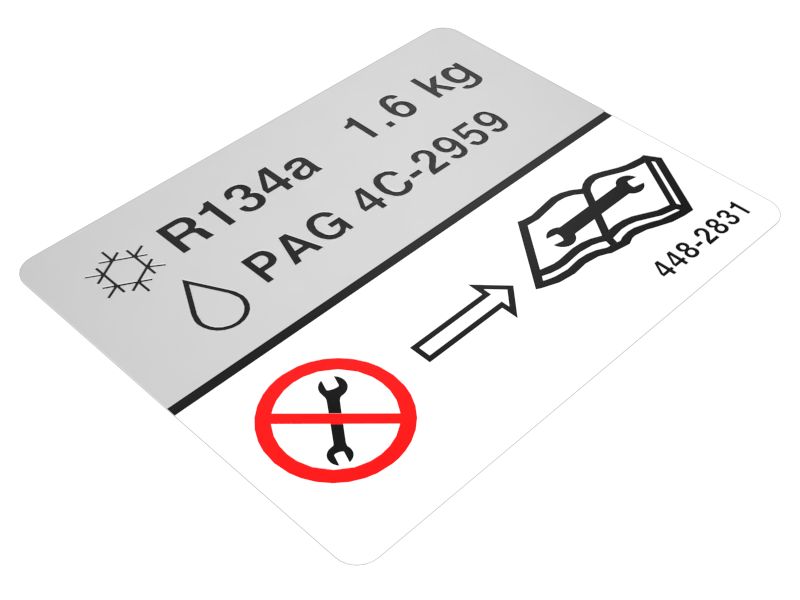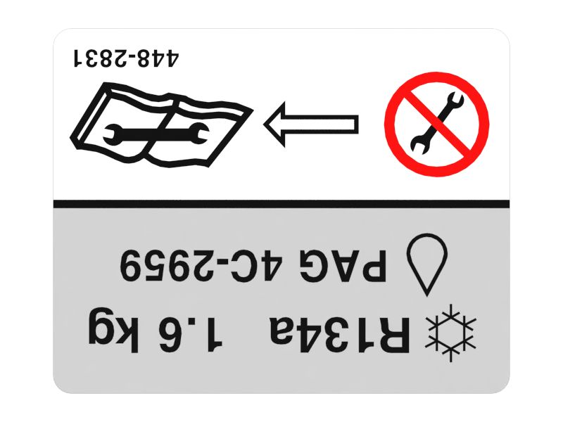 Ετικέτα οδηγιών κλιματιστικού Cat® που χρησιμοποιείται στο εσωτερικό της καμπίνας