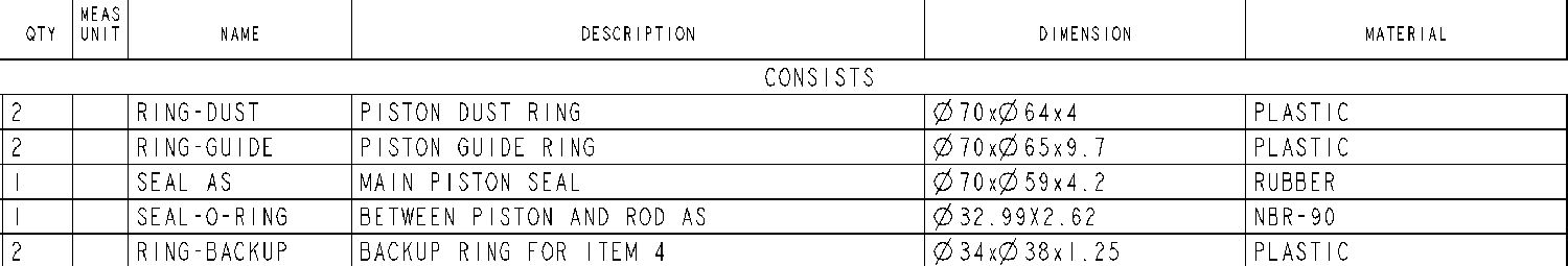 • Kit mencakup debu piston plastik dan cincin pemandu, seal piston karet, seal o-ring NBR-90