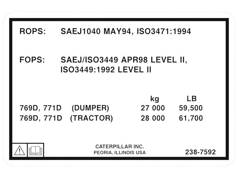 Cat® 769D and 771D Roll Over Protective Structure Film ensures the structure compliance with safety regulations and standards