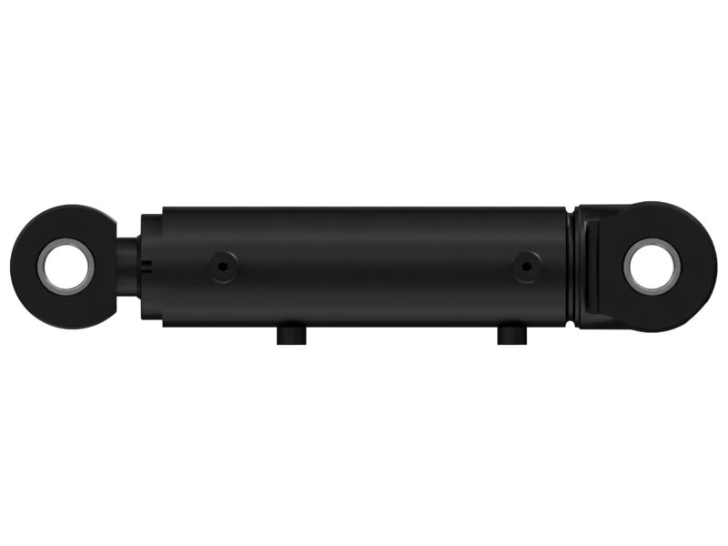 Cilindro idraulico sinistro Cat® corsa 167,3 mm con connettore a spina dritto e collegamento a occhiello su entrambe le estremità utilizzato per l'inclinazione della benna