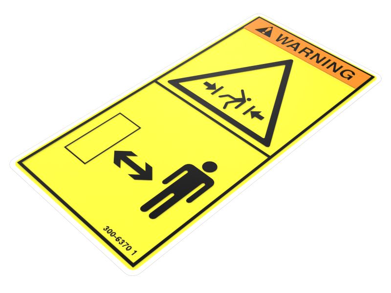Cat® Crush Hazard Warning Film is a safety decal used on equipment to caution individuals about the risk of being crushed or trapped by moving parts