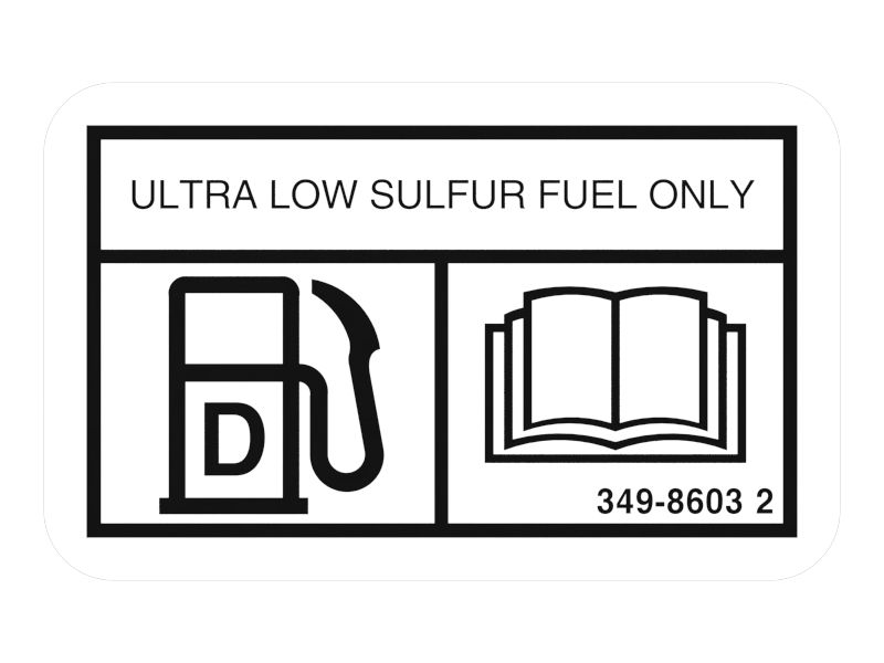 Atributos: • Com fundo branco com caracteres e símbolos pretos. • Mensagem da Película: SOMENTE COMBUSTÍVEL DE ENXOFRE ULTRABAIXO • Fornecida com um adesivo superforte que garante sua adesão com segurança à superfície do tanque de combustível • Cumpre as regulamentações e as normas aplicáveis para etiquetas de advertência e sinalização.