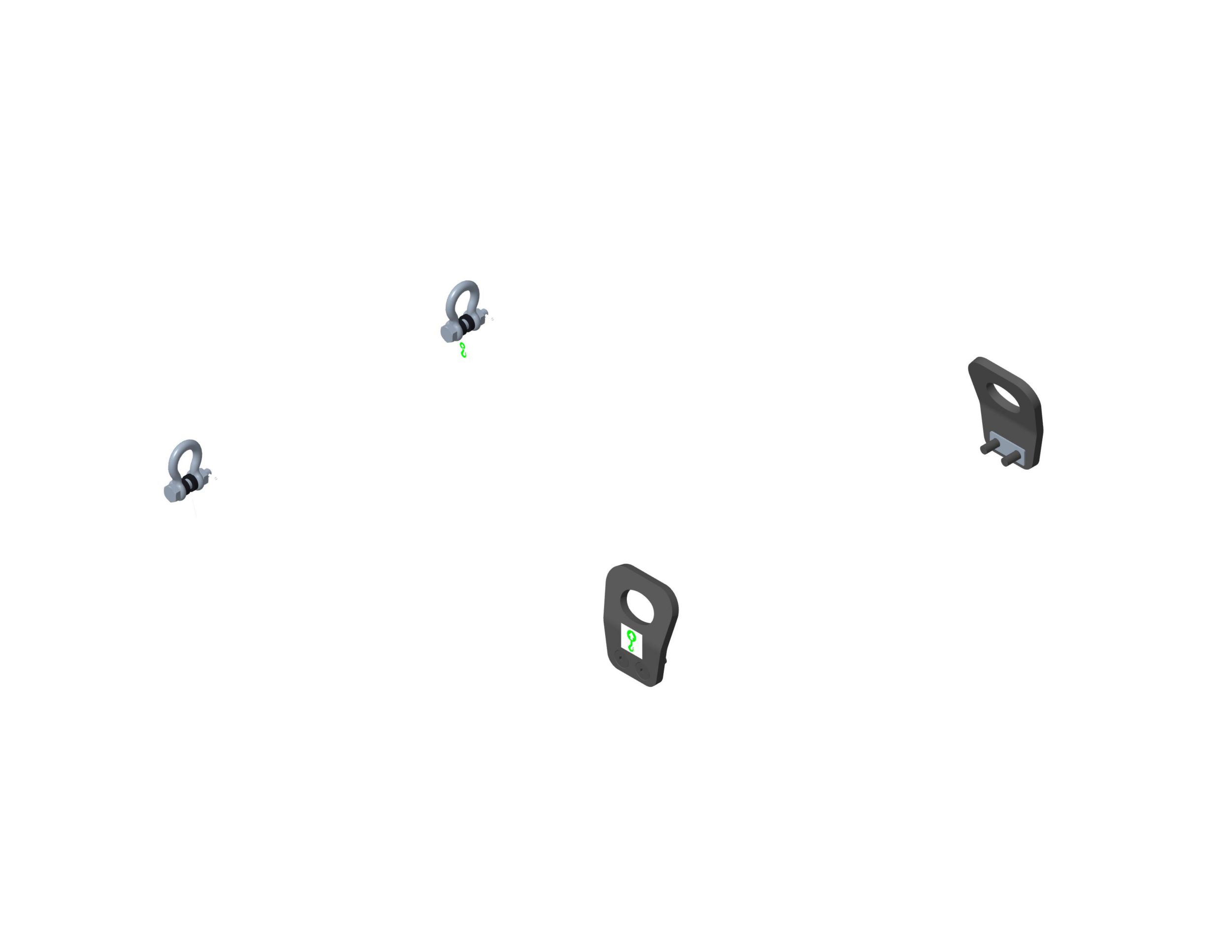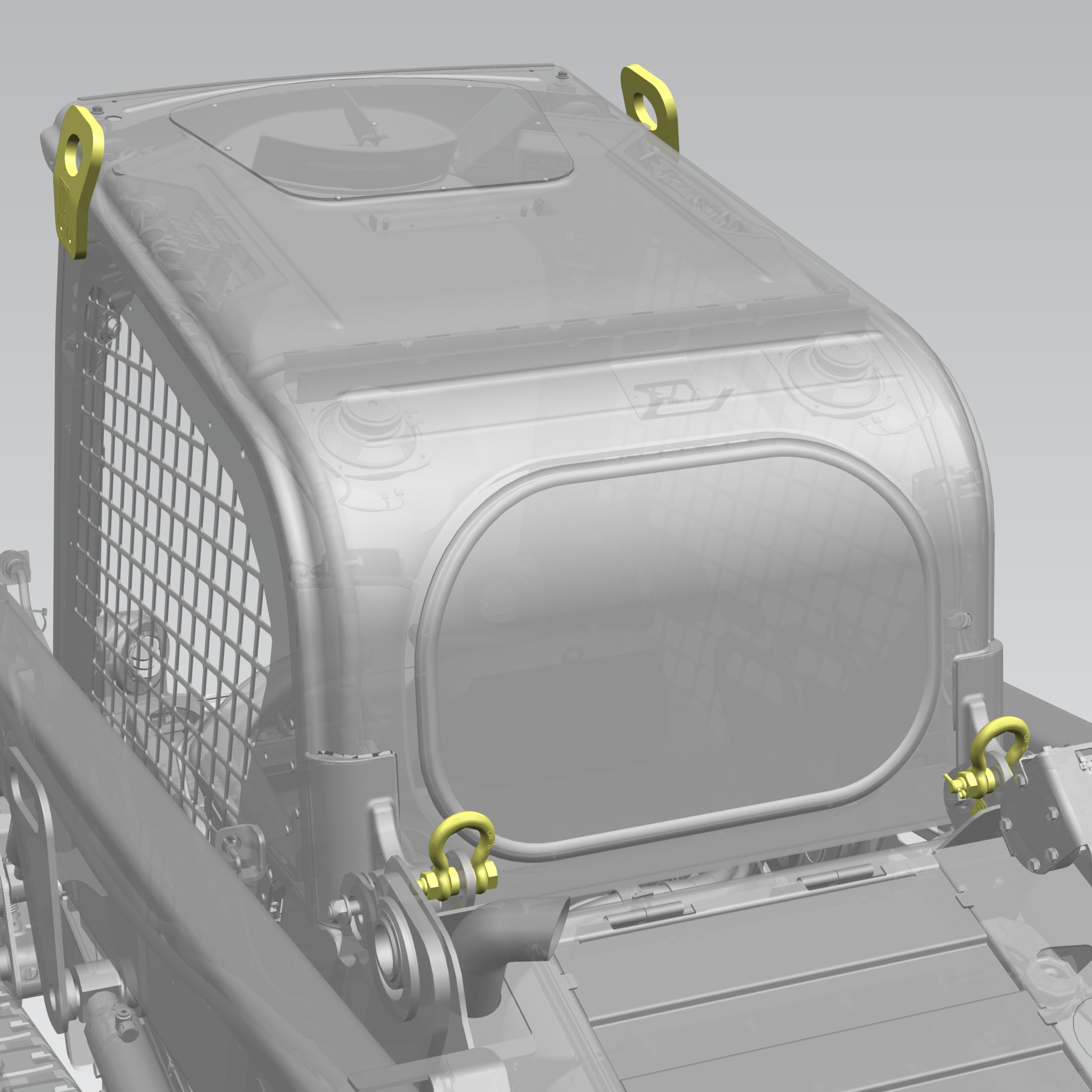Contém peças que se prendem ao teto da cabine e ao chassi da máquina que permitem que a máquina seja levantada.